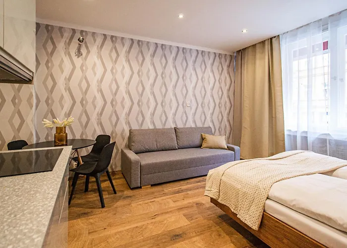 El Cozy Studio In The Main City Center Praga se encuentra a una distancia de 1 km de la Sinagoga Vieja-Nueva y a 5 minutos a pie de la estación de metro Národní třída. Situado a un corto paseo del Teatro Nacional, este apartamento cuenta con útiles artículos de limpieza, como un secador de pelo.